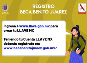 Una vez obtenida tu LLAVE MX realiza tu registro en: https://www.becabenitojuarez.gob.mx/